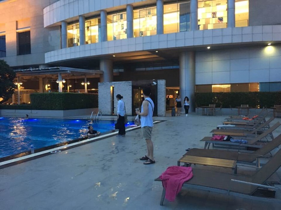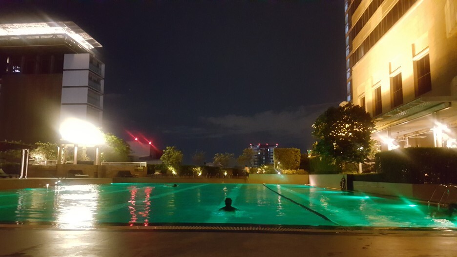 파툼완 호텔내부에는 각종편의시설이 있는데요 저는 밤에 보는 실외수영장이 눈에 띄었습니다.