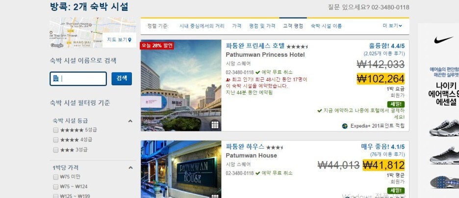 예시로 든 화면에서 제가 묵었던 파툼완 프린세스 호텔인데요
